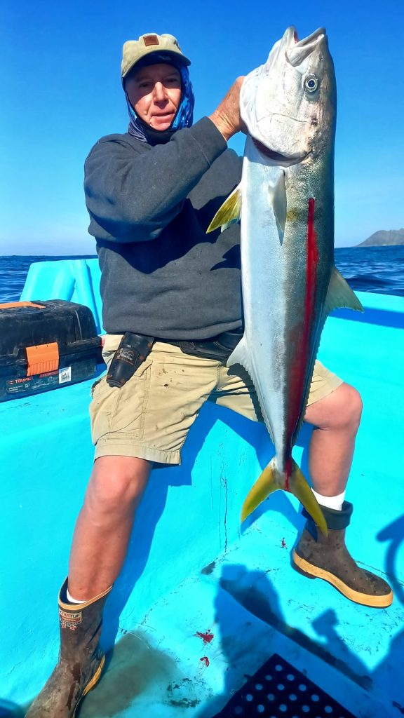 The yellowtail are everywhere and fish are starting to get some nice size to them….many 30-40 lb fish being caught now both trolling and jigging. Calico fishing is wide open as well and anglers are pleased with their mixed bag catches. It’s neat that our guests fish in so many different ways…panga, shore fish, kayak and spearfish….everyone is getting limits! Still no Covid here and locals are so very thankful for your visit so Come on Down! Oh and dont forget it’s lobster season!
