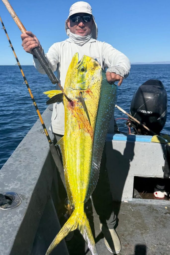 Finally the ocean temps have warmed up to over 70 and the fish have moved in. Anglers are spearing & catching dorado, yellowfin tuna, nice size yellowtail, calico bass, bonita and grouper from pangas. Captain Juan Arce Marron got everybody on fish this week in great weather!